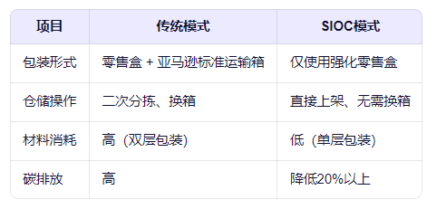 为解决这一痛点,亚马逊推出了 SIOC(Ship in Own Container) 包装计划,并配套严格的 SIOC包装运输测试,推动品牌商直接使用可运输的原厂零售包装发货,实现“从工厂到消费者手中”的直达交付。