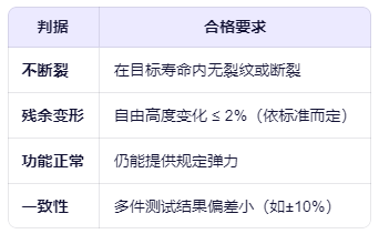 记录其在规定应力水平下,发生断裂或残余变形超标时的循环次数;