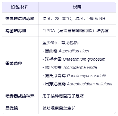 在恒温恒湿条件下,将样品暴露于多种高活性霉菌孢子混合液中;